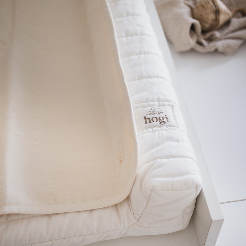 Die Natur Wickelauflage hogi HEVEA HUG ist unserer Herzensprojekt. Sie wurde von Hebamme Sissi Rasche entwickelt und bietet deinem Baby von Beginn an den größten Komfort. Die Form der Wickelauflage schafft eine ideale Position zum Wickeln. Der gemütlich weiche punktelastische Naturkautschuk-Kern lässt dein Baby auch bei viel Bewegung sicher und weich liegen. Alle Bestandteile sind aus rein natürlichen Materialien gefertigt.