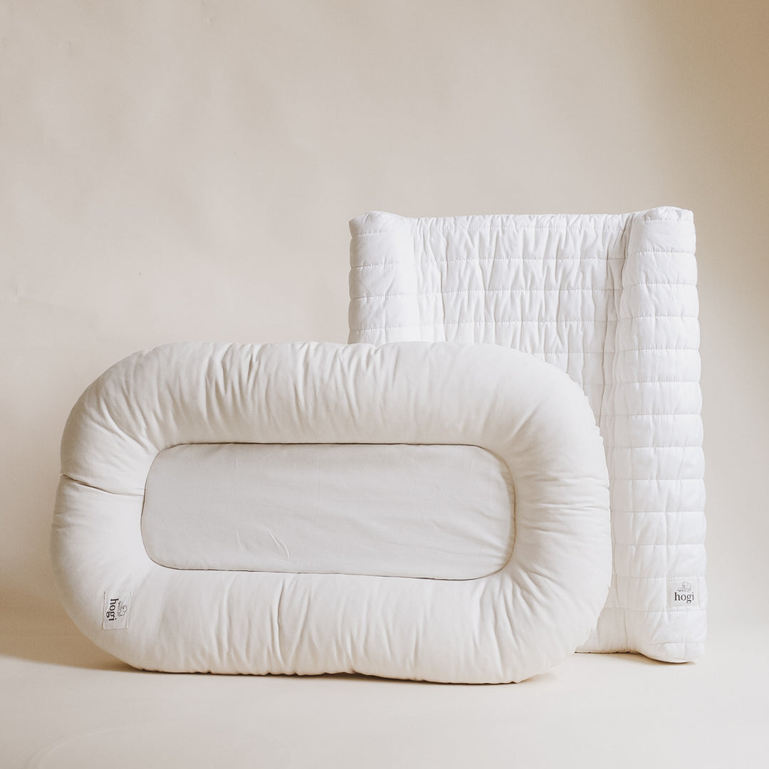 Die Natur Wickelauflage hogi HEVEA HUG ist unserer Herzensprojekt. Sie wurde von Hebamme Sissi Rasche entwickelt und bietet deinem Baby von Beginn an den größten Komfort. Die Form der Wickelauflage schafft eine ideale Position zum Wickeln. Der gemütlich weiche punktelastische Naturkautschuk-Kern lässt dein Baby auch bei viel Bewegung sicher und weich liegen. Alle Bestandteile sind aus rein natürlichen Materialien gefertigt.